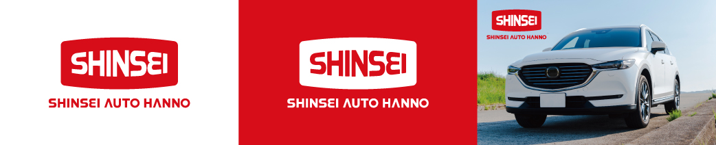 新生オート飯能様では、看板・Web・販促物などで複数のロゴ表現が混在しており、