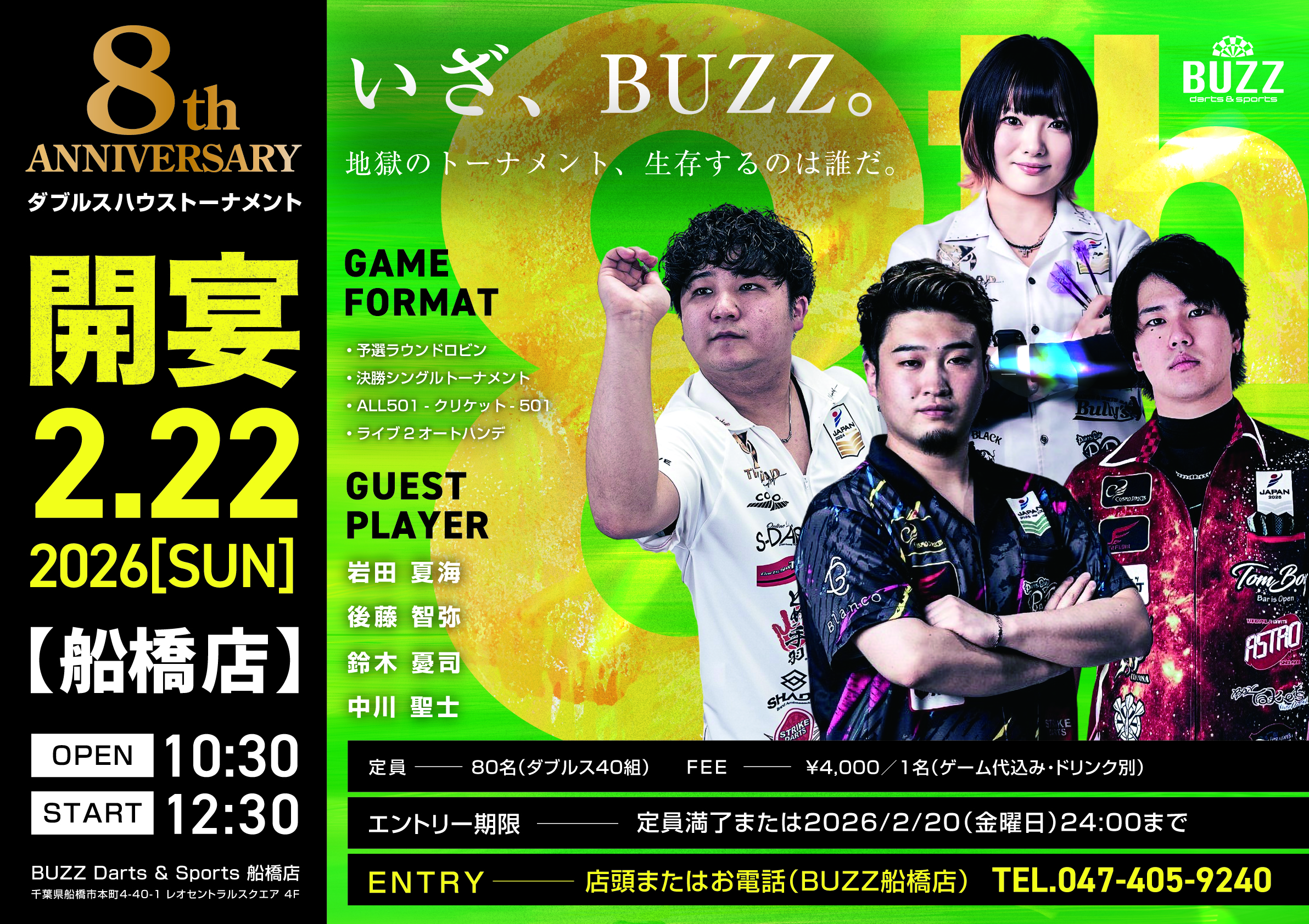 BUZZ Darts & Sports 船橋店様の8周年記念イベントとして開催される